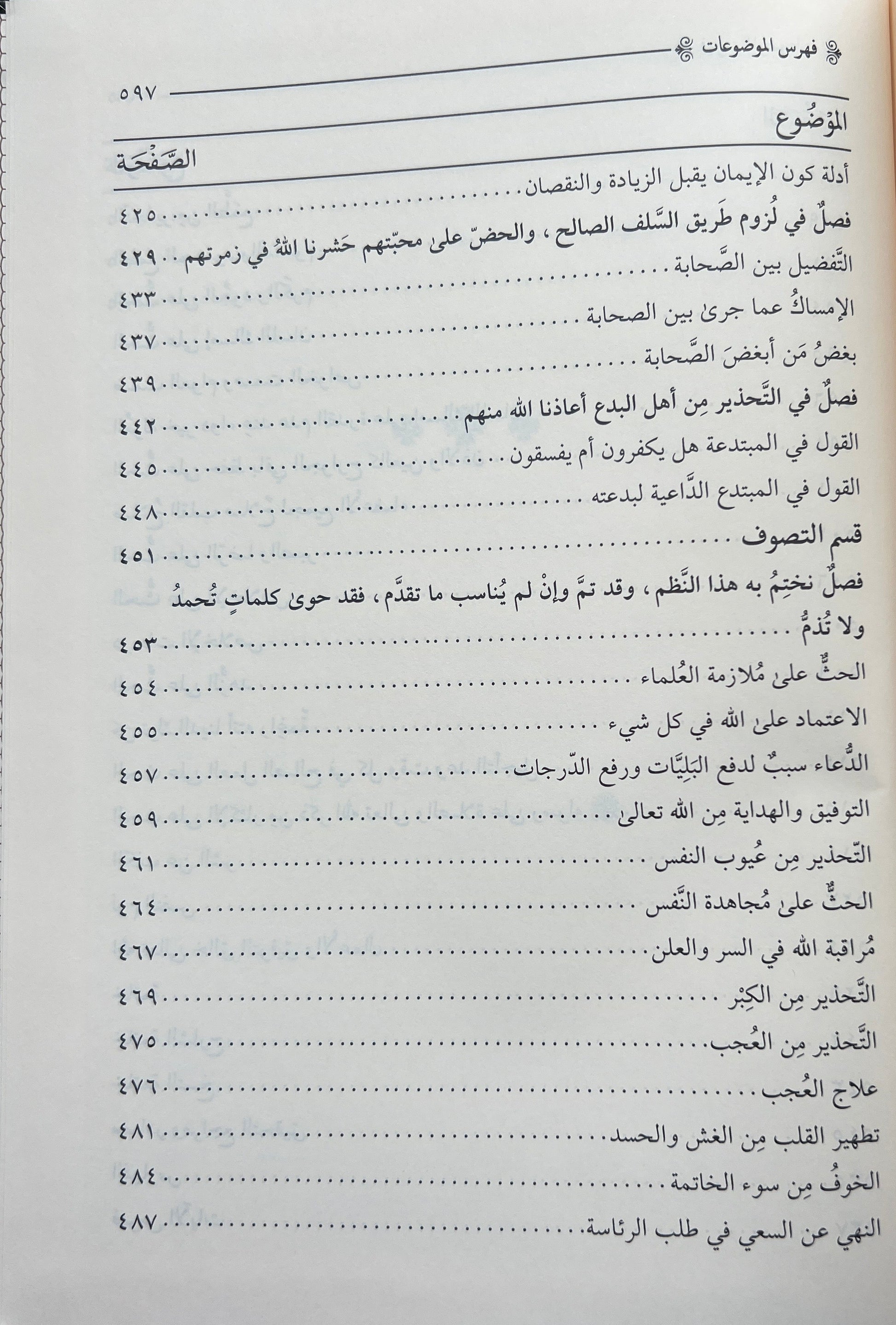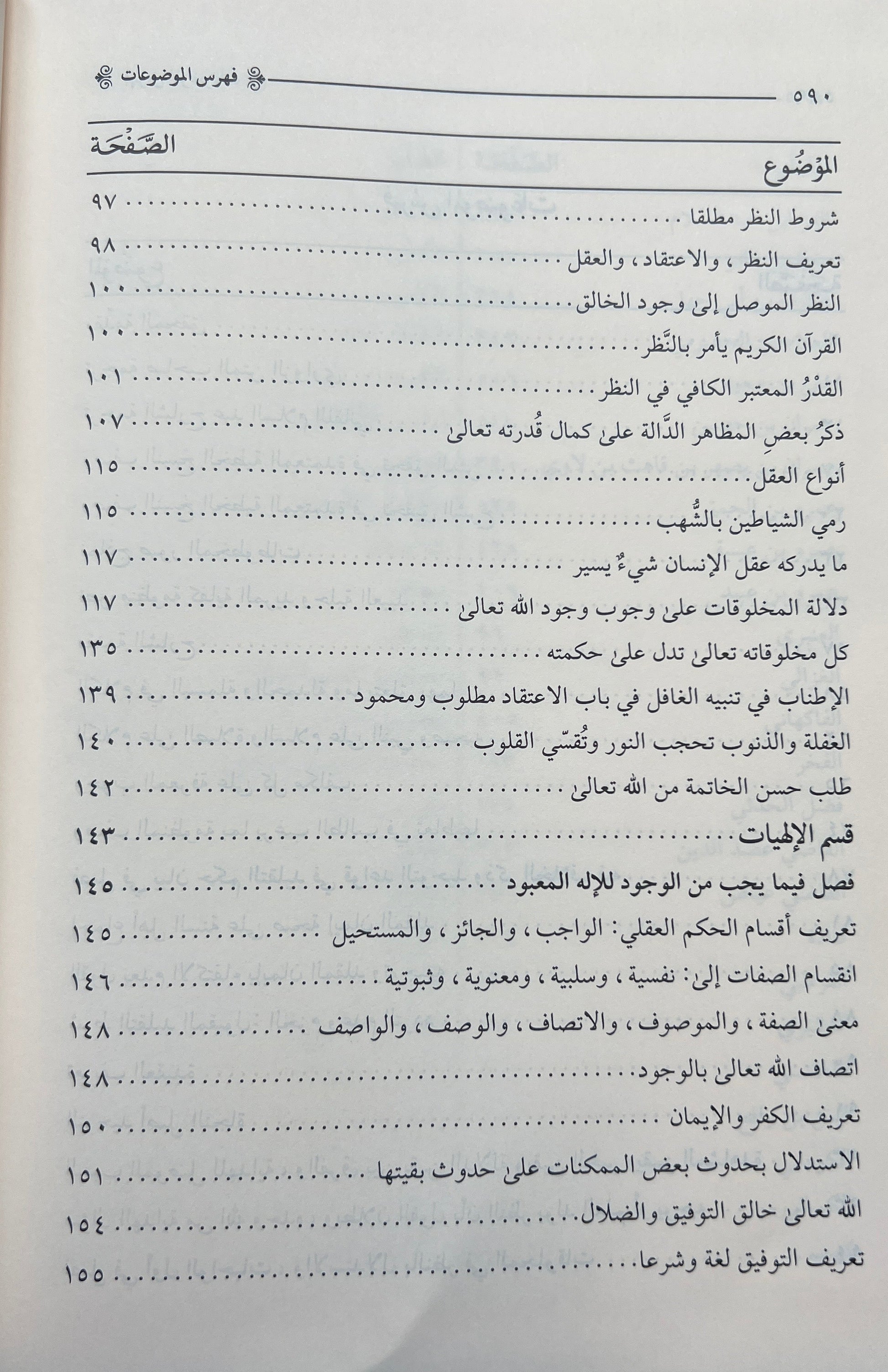 Het werk combineert tekstuele en rationele argumenten om de fundamenten van het geloof uit te leggen: de eenheid van Allah (ʿazza wa jall), Zijn eigenschappen, de profetie, het geloof, en de innerlijke zuivering.