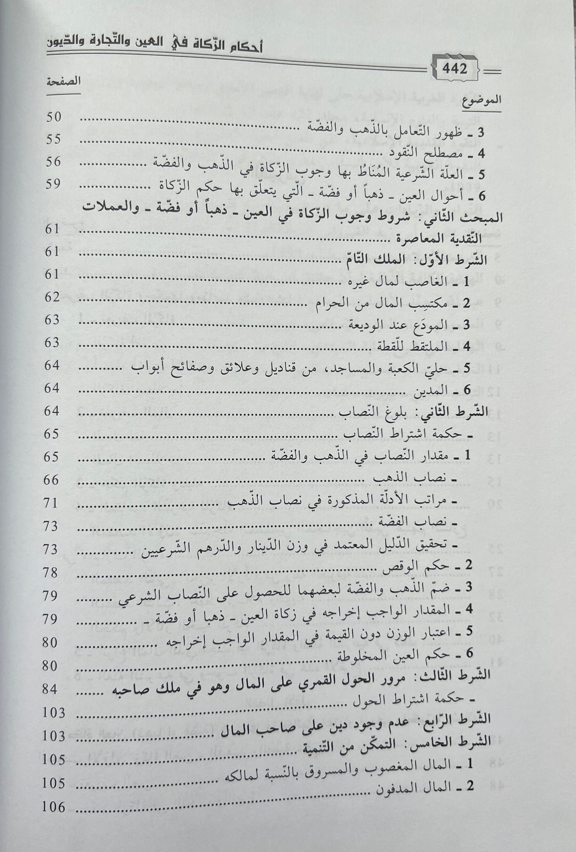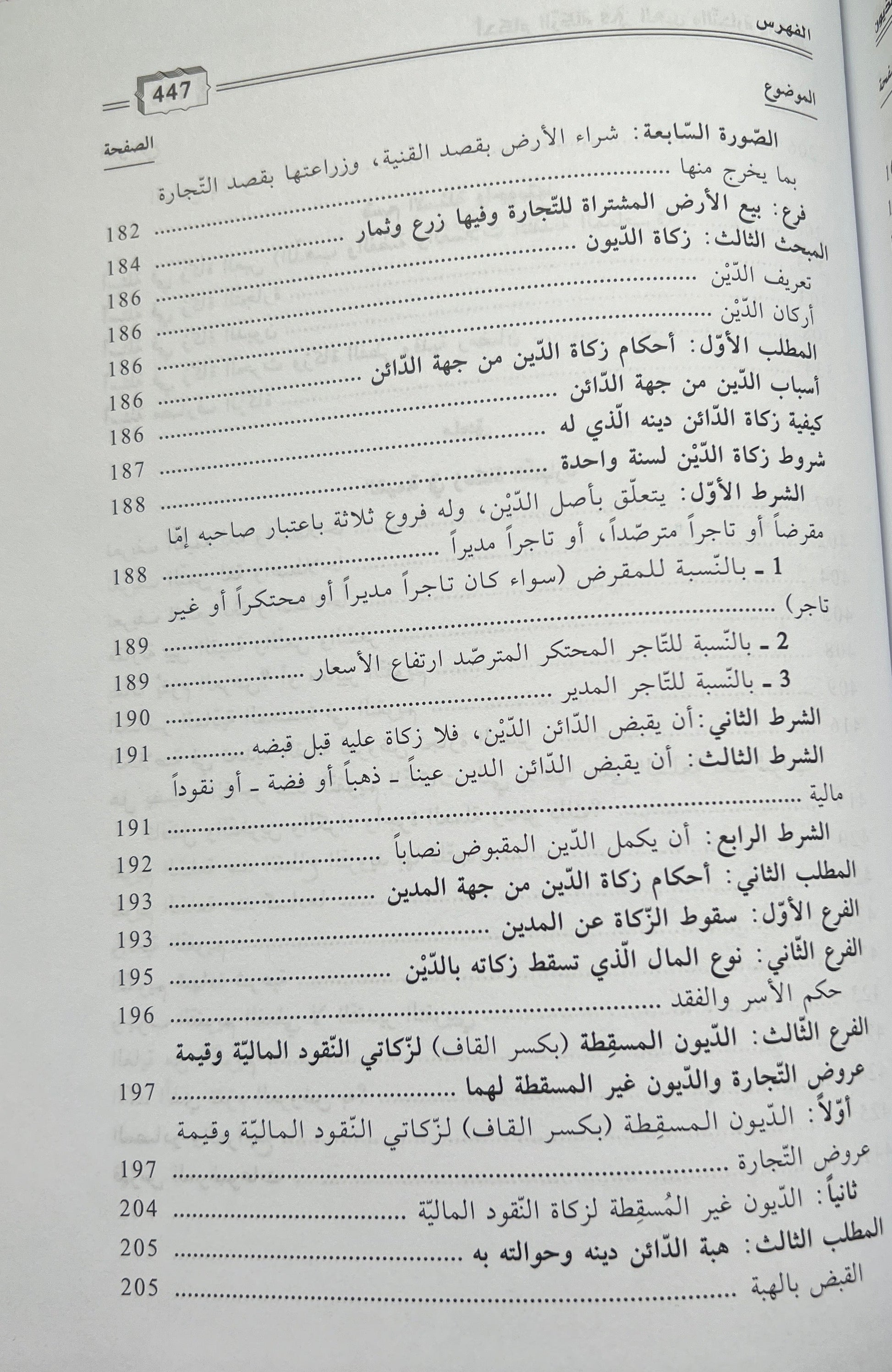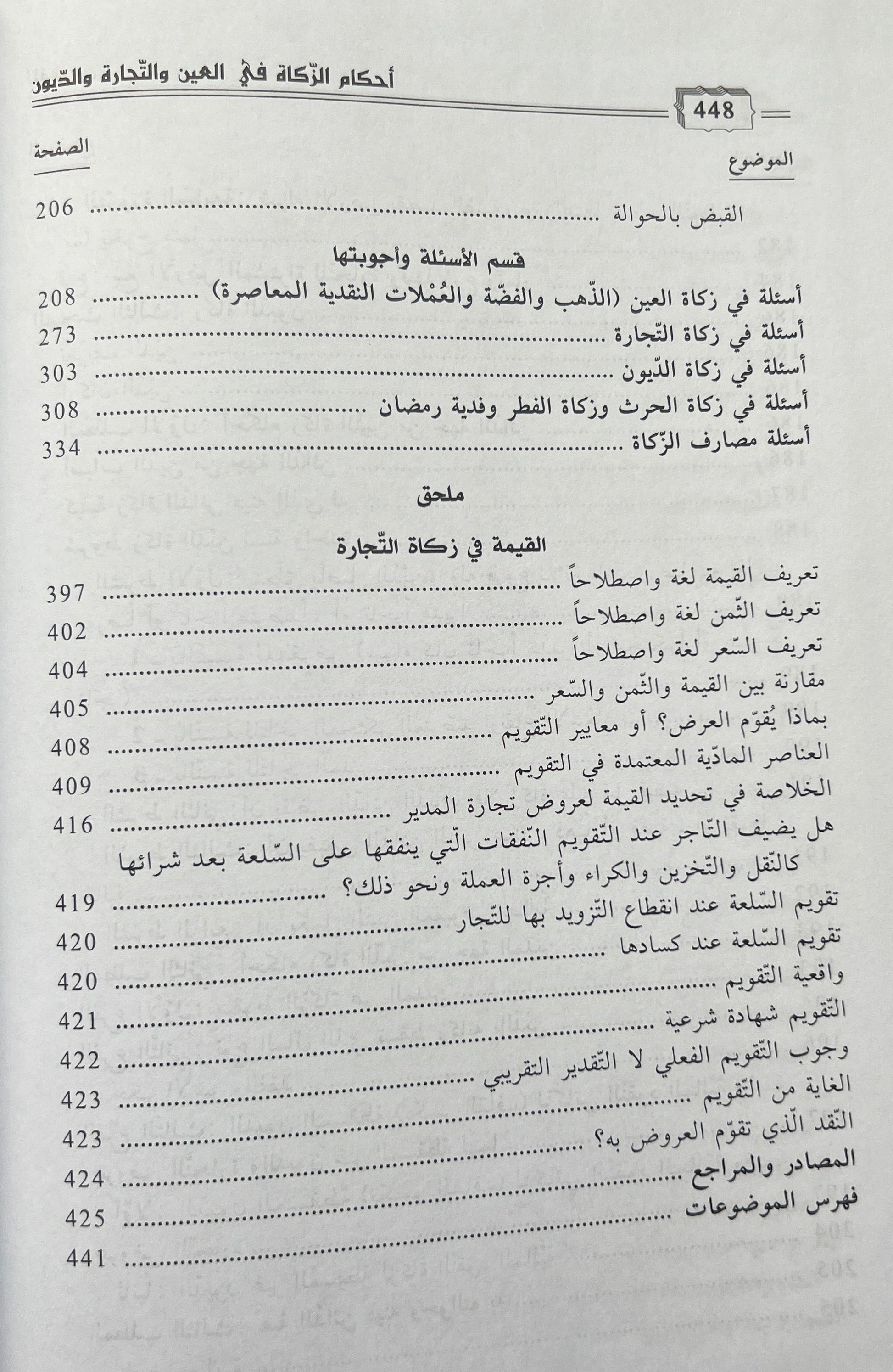 كتاب فقهي متكامل في أحكام الزكاة في النقود والتجارة والديون، مع معالجة تطبيقية لقضايا مالية معاصرة كالنقود الحديثة والتعامل التجاري، وفق قواعد المذهب المالكي.