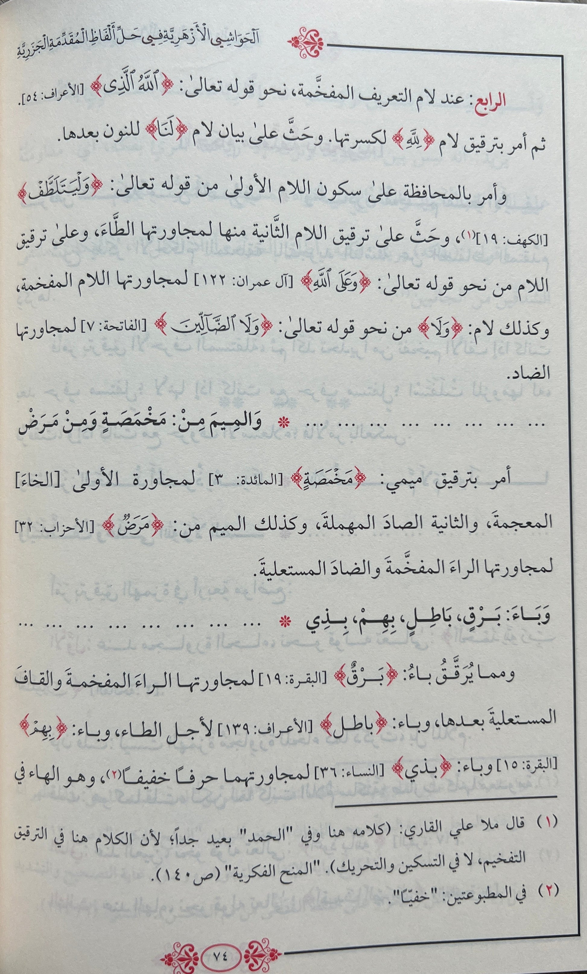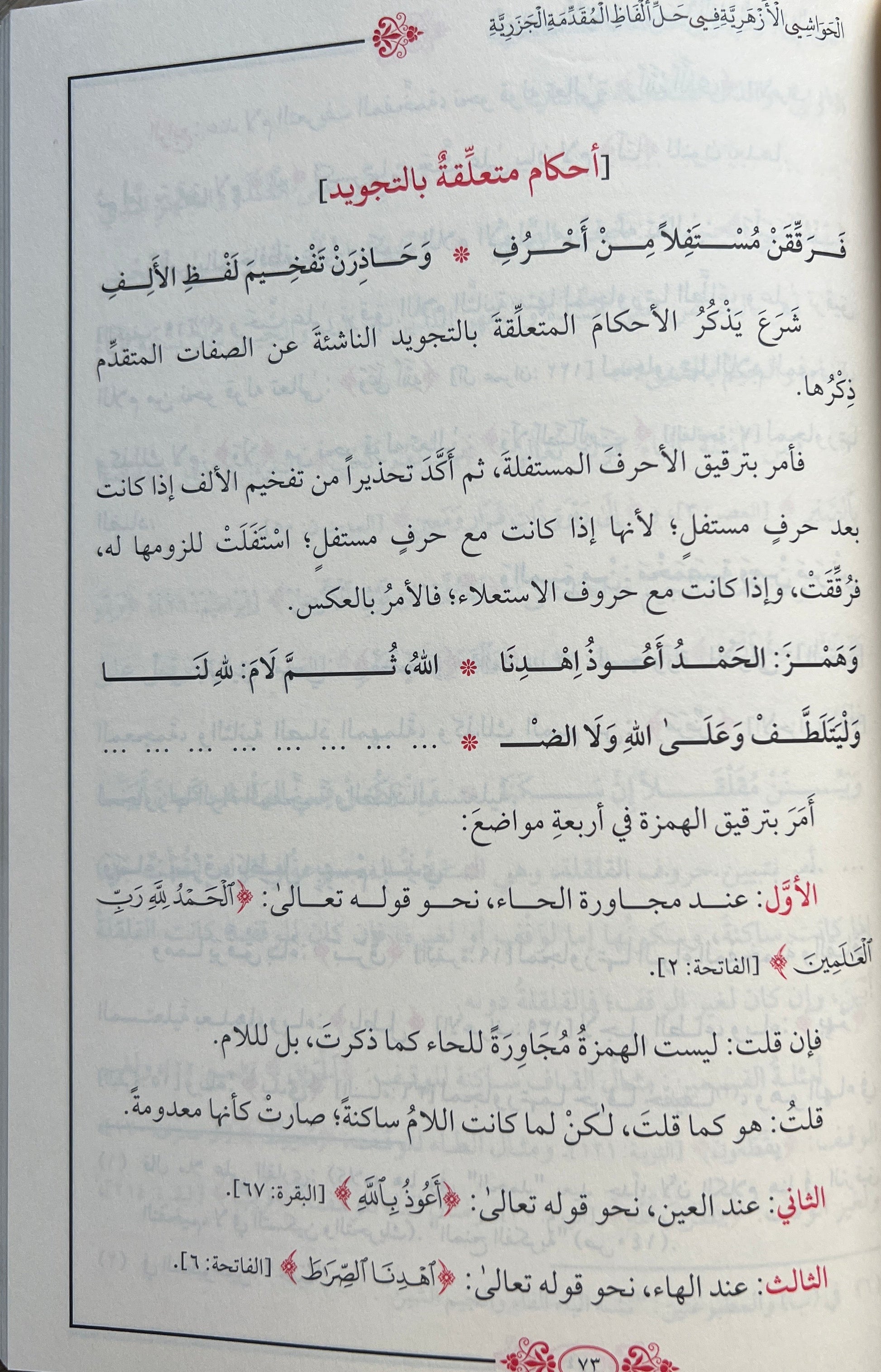 Al-Azharī explains the vocabulary and meaning of every verse in the poem, deriving the tajwīd principles contained within each line in a clear and structured style.